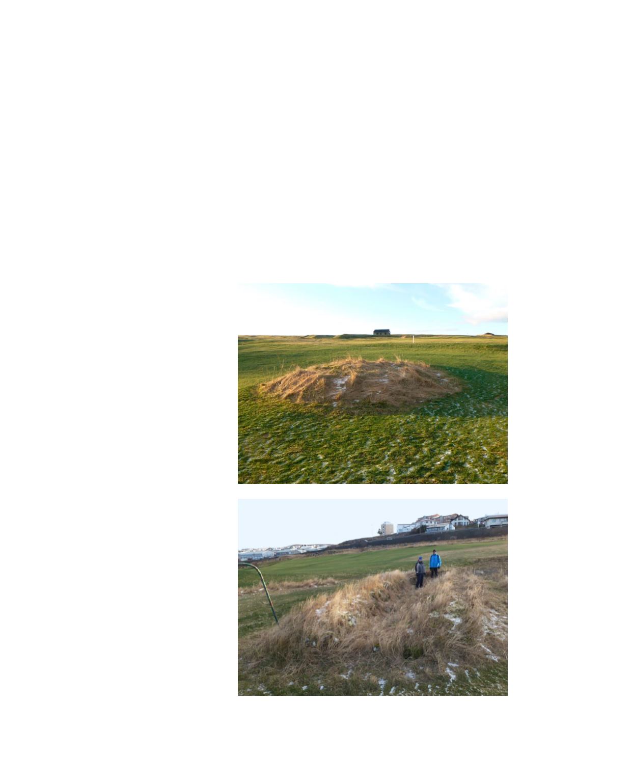suðurs og göngum upp að þústinni sem